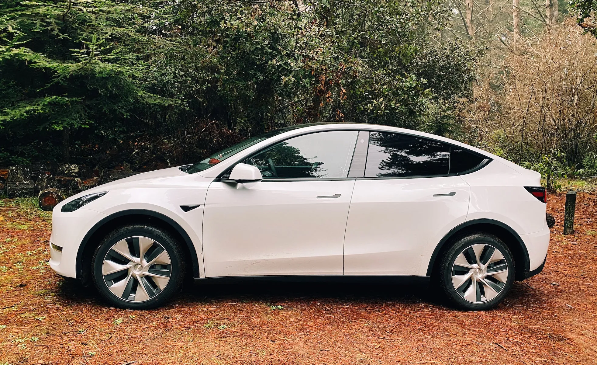 最后说说露营体验。后排座椅折叠垫上软垫铺上被子,车内空调打开露营模式,足够两个人舒舒服服在野外度过一个晚上。相比帐篷(我买的是四人帐篷)空间上的确局促一些,但恒温空调、方便的 USB 充电口、全景天窗视野和无需担心野生动物袭击使得睡 Model Y 远比睡帐篷舒适。另外也省却搭帐篷收帐篷的时间和精力,更不需担忧突然下雨时铺设隔水布和防雨篷。周末逃离工作喧嚣,在森林中的清晨醒来,睁开眼透过天窗便是树木和微雨,下车与朋友和狗狗一起 hiking,轻松惬意至此。