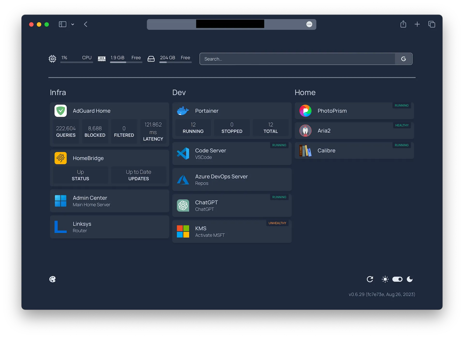 - homepage:简易的 Dashboard,作为所有服务的统一入口。