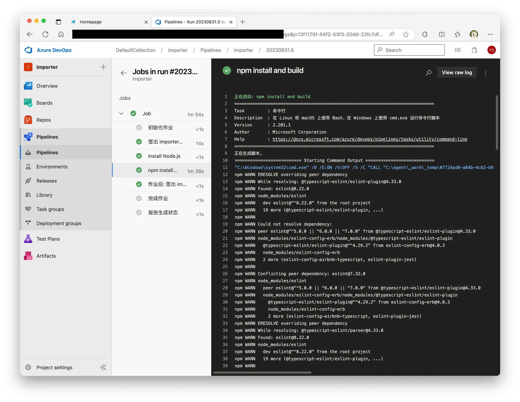 CI 配置如果习惯了一脉相承的 GitHub Actions 也非常容易适应,在仓库里加上 azure-pipelines.yml 就可以配置 CI pipeline。设置 agent 也很简单,DevOps 提供了各个 OS / 架构的配置方法,我图省事直接在本机起了一个节点,反正平时也不会有很多 CI 任务一起跑,用起来绰绰有余。