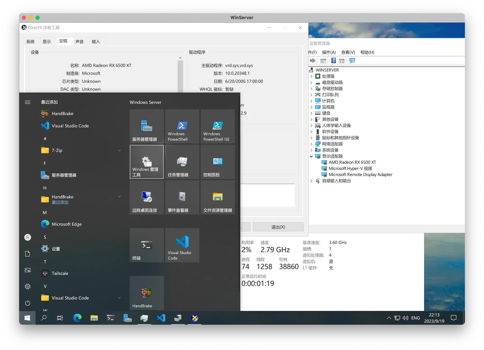 启动 VM,分区通入的 GPU 应该已经被识别并安装好驱动,DirectX 加速也已经打开了。