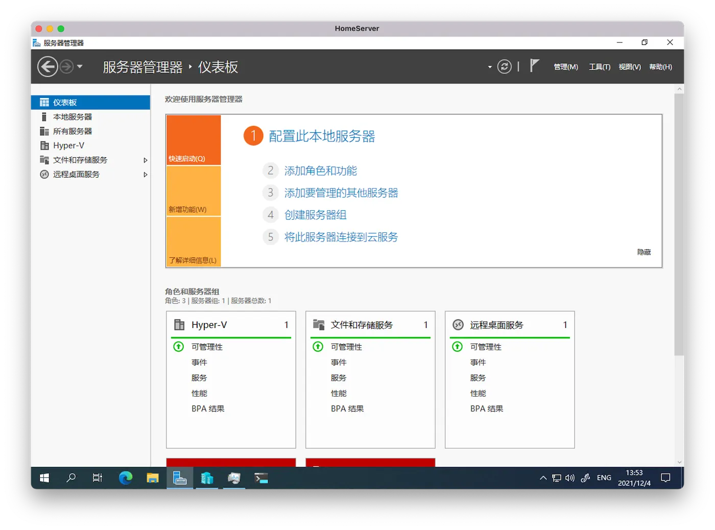 其它所有的家庭服务,我通过 Hyper-V 上的三个虚拟机部署和管理。