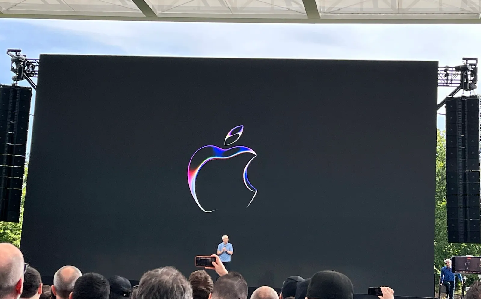 Keynote 开场前两三分钟时库克上台(“我简单讲两句”),之后十点一到就是和全球开发者们一起看视频了。每每有新产品发布或是系统新功能,观众席就会爆发出鼓掌和欢呼。但有意思的是我注意到因为开发者和媒体老师们坐的位置不太一样,经常会导致鼓掌欢呼有明显的差异。比如新产品部分 15 寸 MacBook Air 得到媒体老师们的掌声,开发者兴趣寥寥;反倒 M2 Ultra 的 Mac Pro 支持 PCIe 让我们这边为之一振,媒体老师却比较安静。