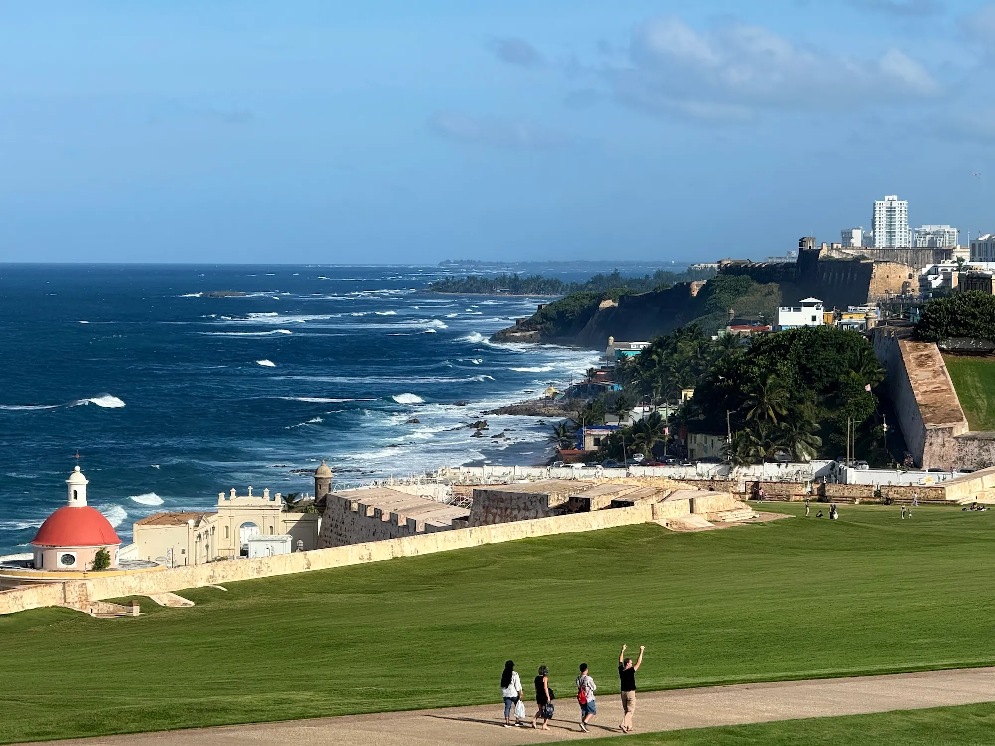 San Juan 是波多黎各的首府,Old San Juan 老城区更是充满历史古迹和中美洲风情。老城应该是一个著名的旅行目的地,因为附近就是港口停泊着庞大豪华的游轮,估计是很多加勒比海游轮的必经之地吧。老城里街道狭窄,坡道繁多,街旁很多房子会刷成鲜艳的彩色,街头不时能看到艺术家的涂鸦。我还算喜欢漫无目的 citywalk,偶然会有惊喜,像是做着礼拜仪式的大教堂和满是鸽子落在游人身上的广场,这种不期而遇比照着攻略打卡更为有趣。