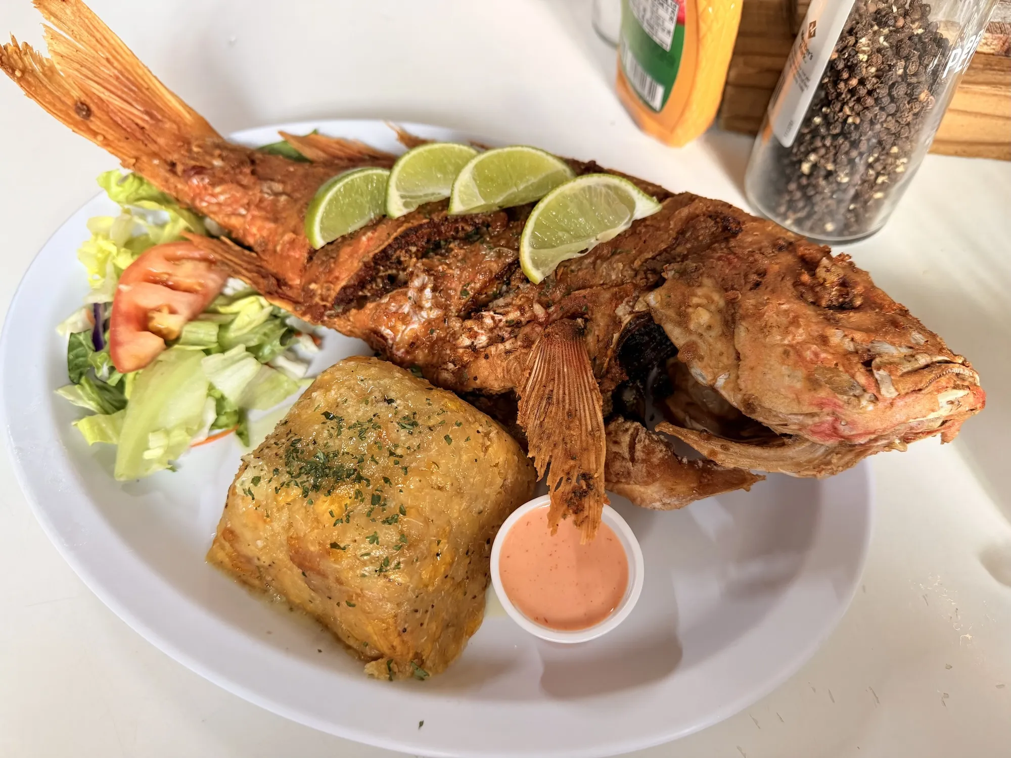 老城有家著名的 gelato 店 Anita Gelato,口味非常多选择,而且都是那种好几个词的口味,大概混了很多原料,像什么 white chocolate caramel almonds,一套小连招下来以为点了三个口味实际上是一个。点完一个 3 flavor gelato 里面得有十来种料。午饭去了一家叫 El Jibarito,puerto rican 传统菜,点了个招牌 fried red snapper。味道么,你想象一条炸鱼是什么味它就是什么味,完全意料之中,mojito 也比较一般,中规中矩。
