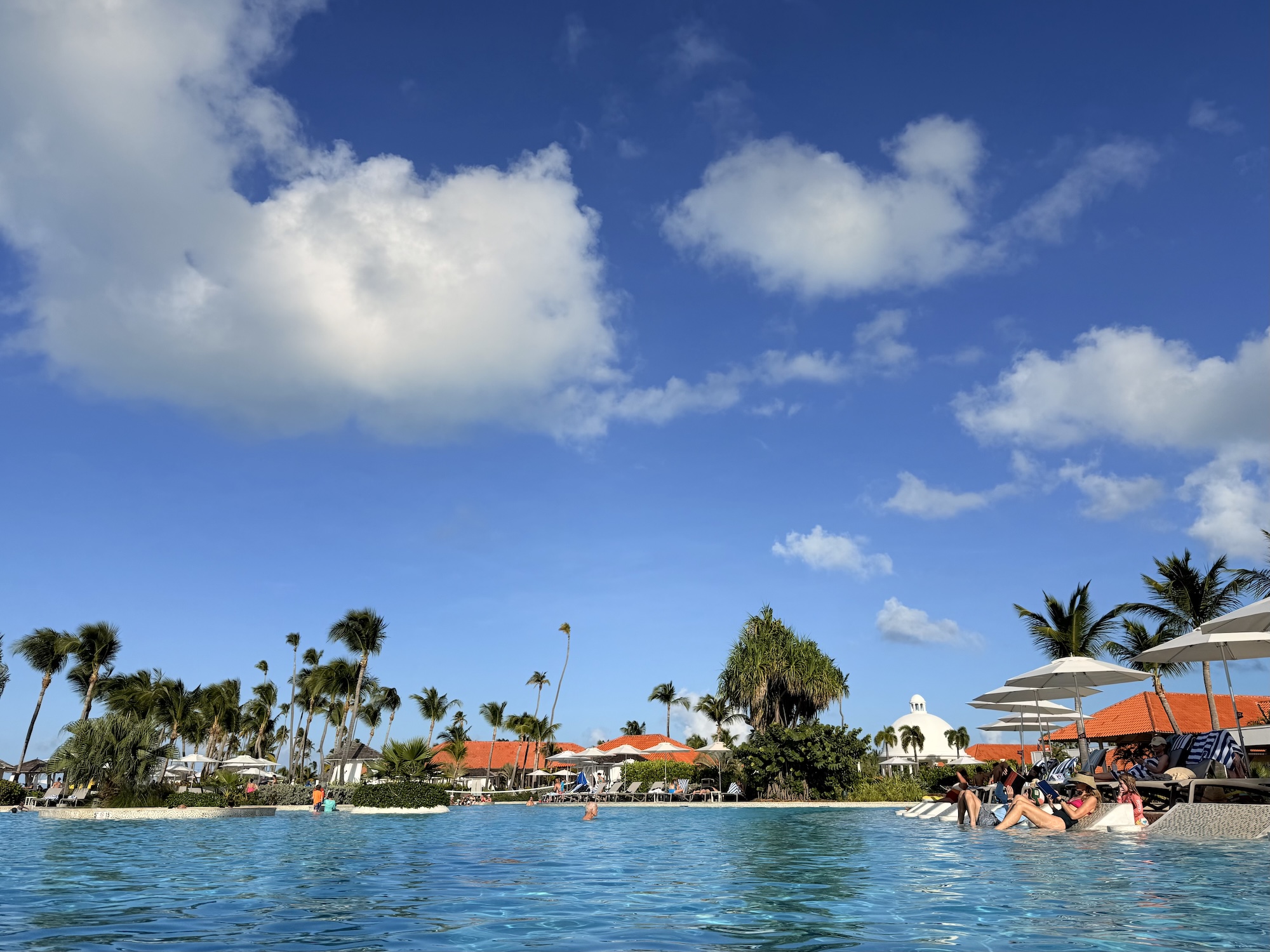 本着海岛旅行还是能躺则躺的原则,选择了 Hyatt Regency Grand Reserve Puerto Rico。这家店位于主岛的一个半岛上,半岛似乎都是高尔夫球场或度假小区,环境还不错。酒店占地还挺大,客房楼是很多较小的二层小楼,每楼大概十几间房,不想走路的话可以打电话叫高尔夫球车接送。虽然早已失去了 Globalist 的身份,凯悦还是友好地给我升级了海景房,不过在没有电梯的二层。房间很宽敞,设施一应俱全,酒店里也有大大小小几个泳池,泳池边也有 bar、餐车、SPA 等,还算适合躺平度假。