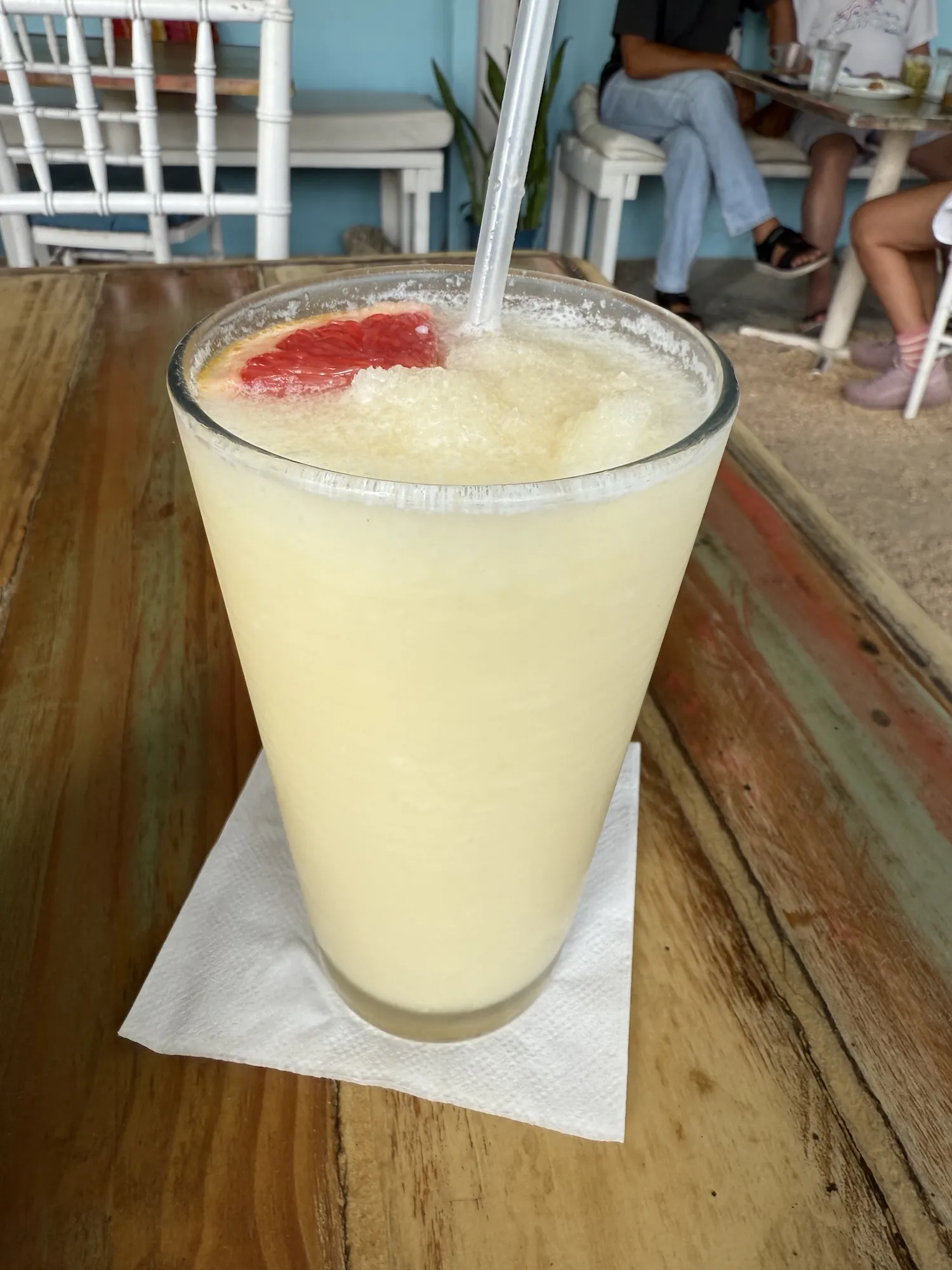 旅途劳顿,我们选择直接在酒店旁边靠海的小餐厅吃饭。点了当地著名的鸡尾酒 Pina Colada,大概是 rum 混上椰浆和菠萝汁,带有很多冰沙,清凉甜美。点了当地小吃似乎是炸的鱼饼,还有烤猪里脊配黄米饭。不知道是不是小岛民风淳朴农产品天然有机,烤猪里脊香嫩无比,简单海盐调味却满口爆汁,真的有农村土猪的味道。